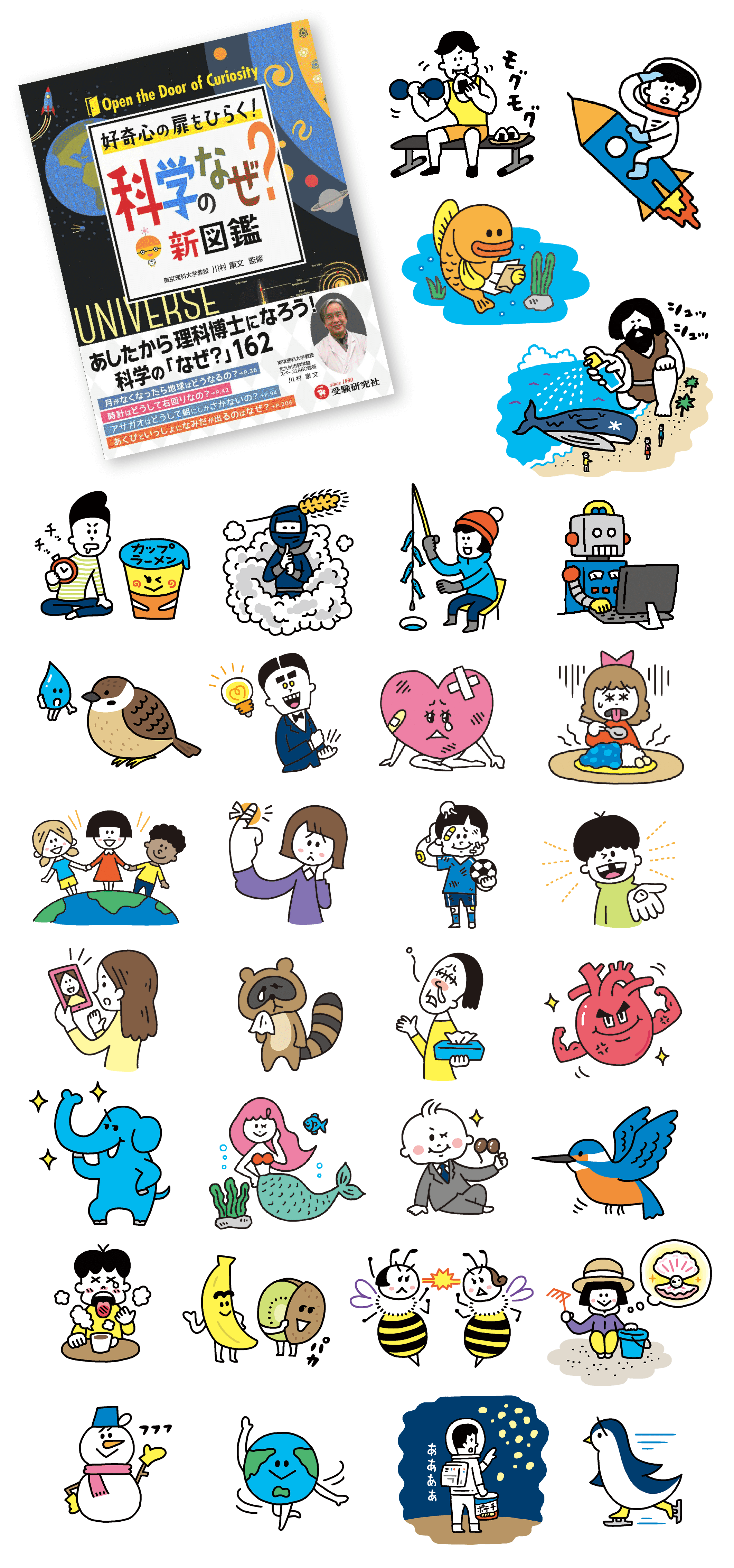 科学のなぜ?新図鑑のイラストの一部を担当しました。小さなカットですが、どんな背景でもしっかりと判別できるよう太めの主線で仕上げています。娘が夢中になって読んでいてクイズを出してきたりします笑。子供ばかりか大人も夢中になってしまう面白さです。
